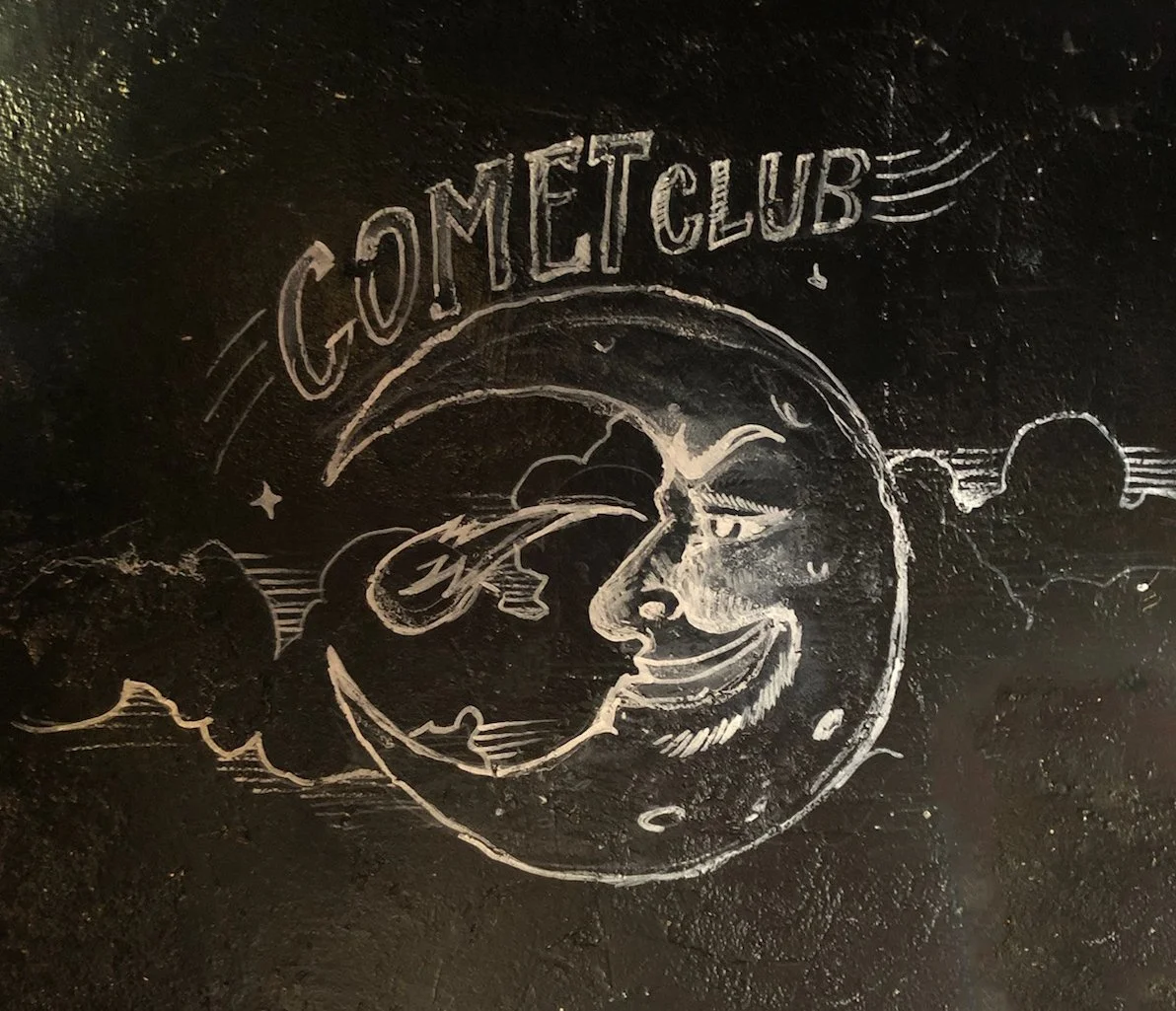 Comet Club is located at 3111 Fillmore St., San Francisco - and a bar was established at this location prior to 1914 (1914 records state an existing saloon) so a long time place for having fun and drinks - the Comet Club was established in 1996 and prior to that it was the Desert Moon and many different names before that . One of the oldest bars in the Marina / Cow Hollow neighborhood.